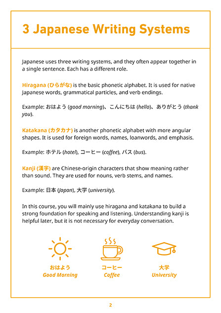 Learn Japanese from scratch with over 4 hours of video lessons and a 200+ page mobile textbook for beginners.